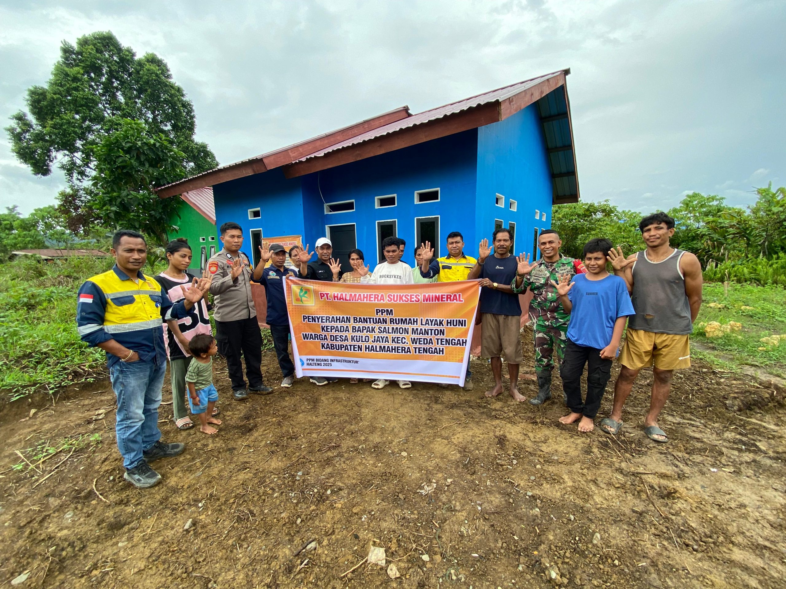 WEDA- PT Halmahera Sukses Mineral (HSM) menyerahkan Rumah Tidak Layak Huni (RTLH) kepada bapak Salmon Manton warga Desa Kulo Jaya Kecamatan Weda Tengah Kabupaten Halteng pada Jumat (12/12).