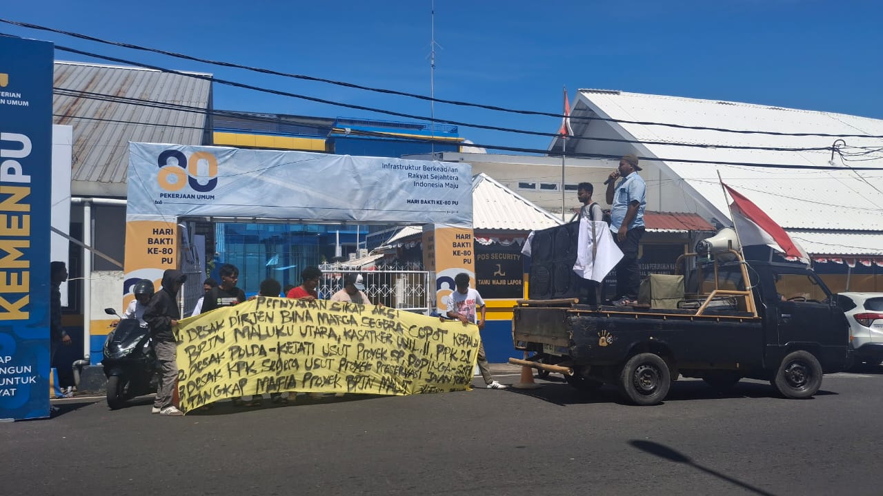 Aksi unjuk rasa ini lakukan diduga adanya praktik korupsi di Balai Pelaksana Jalan Nasional (BPJN) Maluku Utara. Sejumlah indikasi suap proyek, manipulasi pekerjaan, hingga jual beli jabatan menyeret nama Kepala BPJN Maluku Utara, Navy Umasangaji, bersama sejumlah pejabat struktural dan Pejabat Pembuat Komitmen (PPK) pada proyek jalan nasional dan kegiatan jalan daerah Tahun Anggaran 2025.
