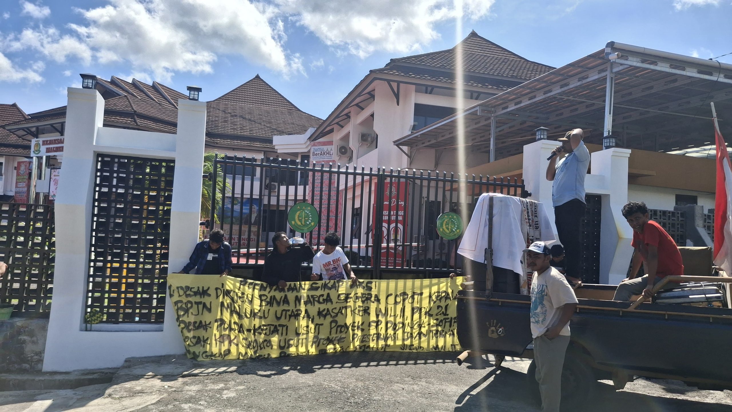 Aksi tersebut secara tegas menuding BPJN Maluku Utara sebagai sarang praktik korupsi, kongkalikong proyek, serta dugaan jual beli jabatan yang merugikan keuangan negara.