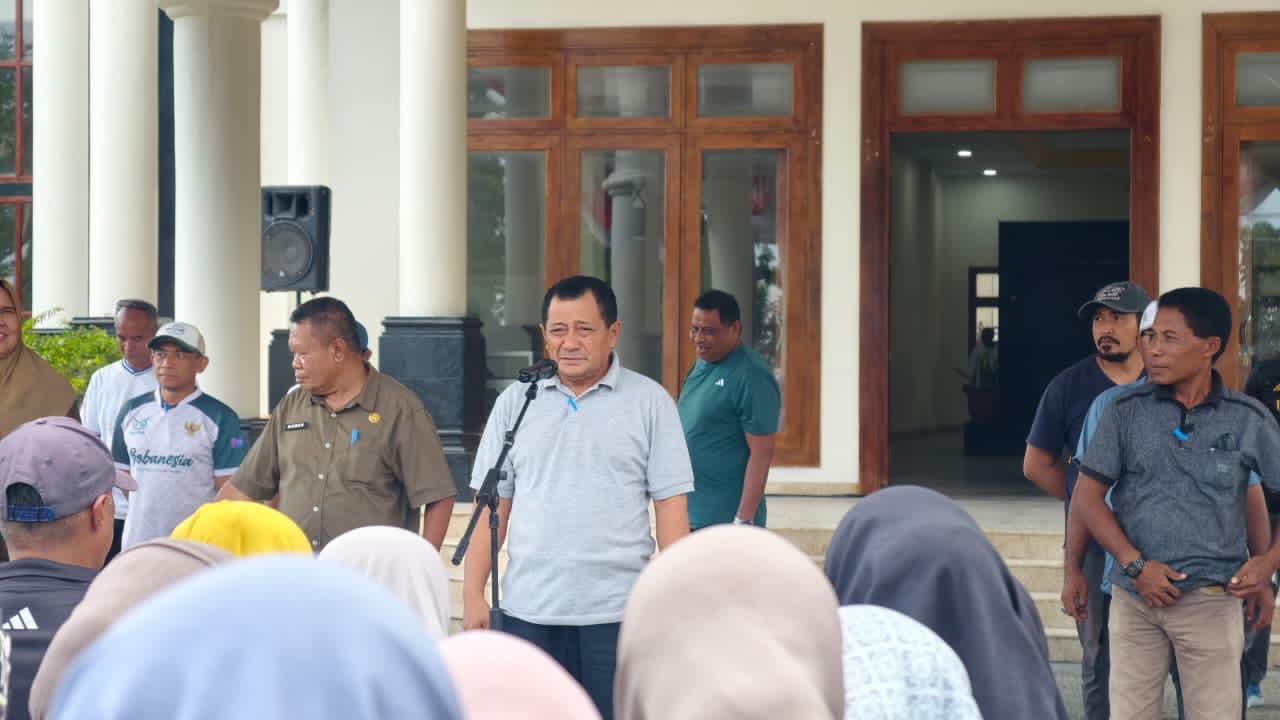 WEDA- Sekretaris Daerah Kabupaten Halmahera Tengah, Bahri Sudirman memimpin apel sore di halaman kantor Bupati Halmahera Tengah, pada Jumat (9/1).
