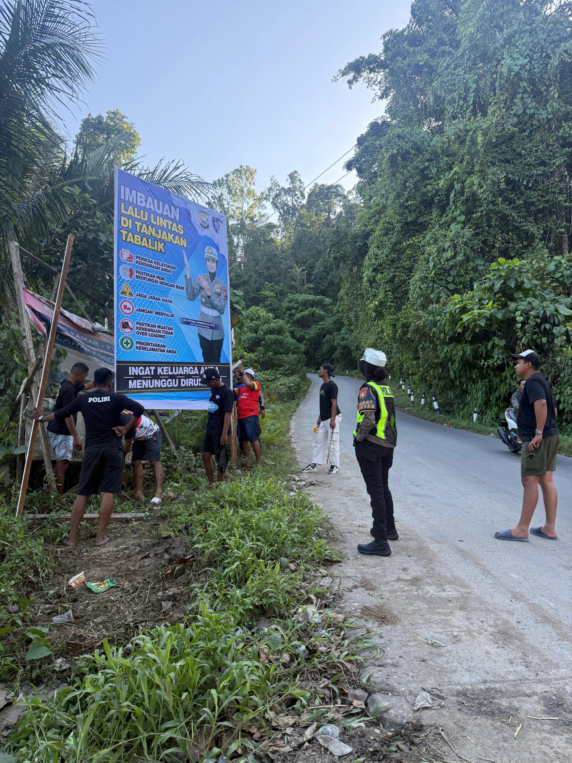 WEDA- Dalam rangka menekan angka kecelakaan lalu lintas, Satuan Lalu Lintas (Satlantas) Polres Halmahera Tengah melaksanakan kegiatan pemasangan imbauan keselamatan berlalu lintas di tanjakan Tabalik, yang merupakan salah satu titik rawan kecelakaan lalu lintas tunggal dan hampir setiap hari terjadi kecelakaan di lokasi tersebut.